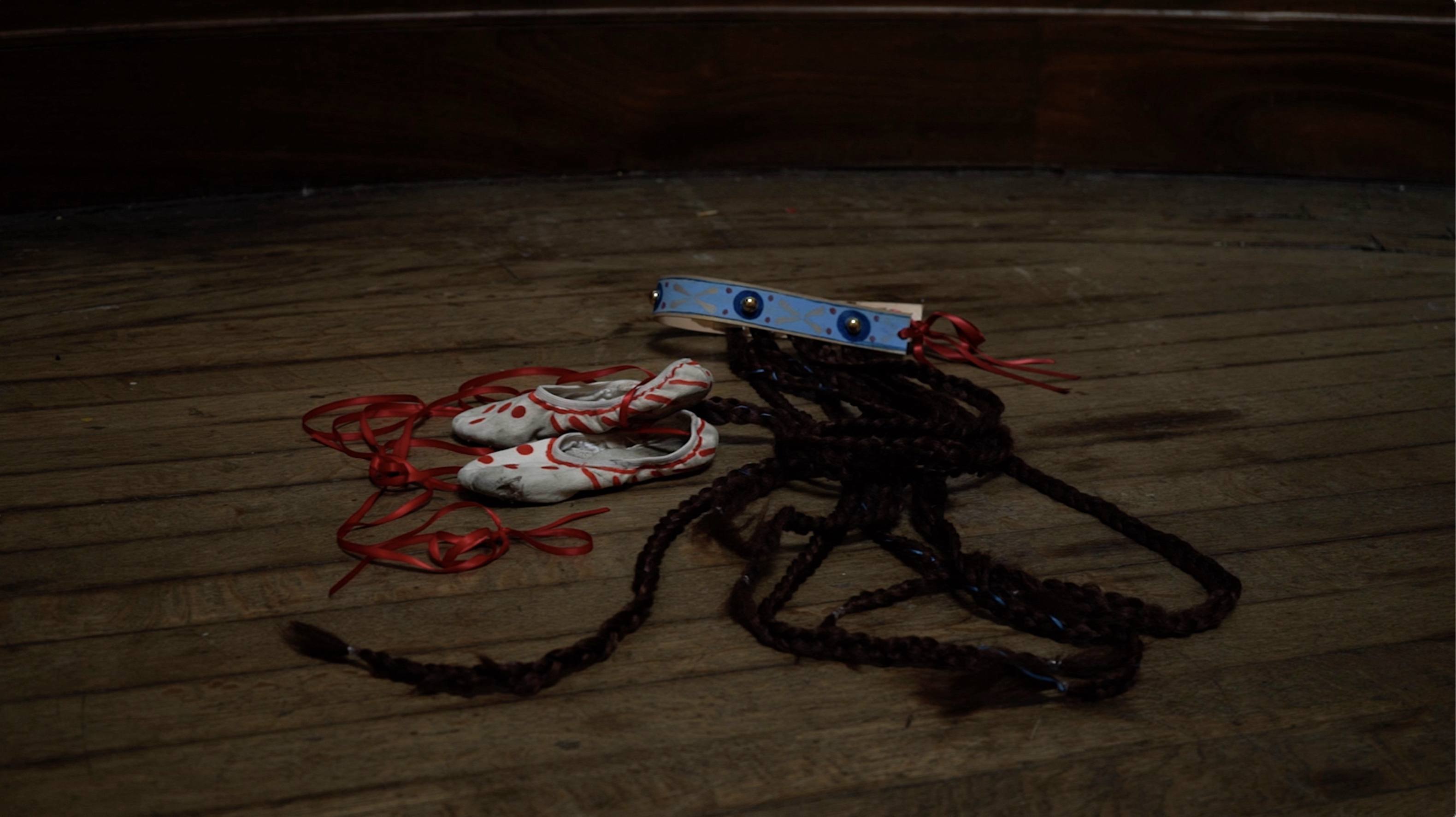 This moving image work simultaneously reflects on Marianne Hirsch’s text Rites of Return whilst extending Rite of Spring, Le Sacre du Printemps (1913) – a riot-inducing ballet originally performed by the Ballet Russes at the Théâtre des Champs-Elysées in Paris. The initial narrative circles around a sacrificial virgin dancing herself to death, appropriated aesthetically and thematically from Slavic folklore. In this version, the soloist awakens fraught with solastalgia due to ecological decline and lack of community. She remedies this by drawing upon old-country aphorisms and the poetic structures of Strakh vylyvaty or pouring forth the fear, a Ukrainian healing technique to remedy anxieties, especially those related to land. Focusing on the balletic era of Diaghilev, Nijinsky, Stravinsky & Roerich; the costumes in Rite of Return are based on original objects, drawings and descriptions held in the V&A Dance Archives in London, UK.